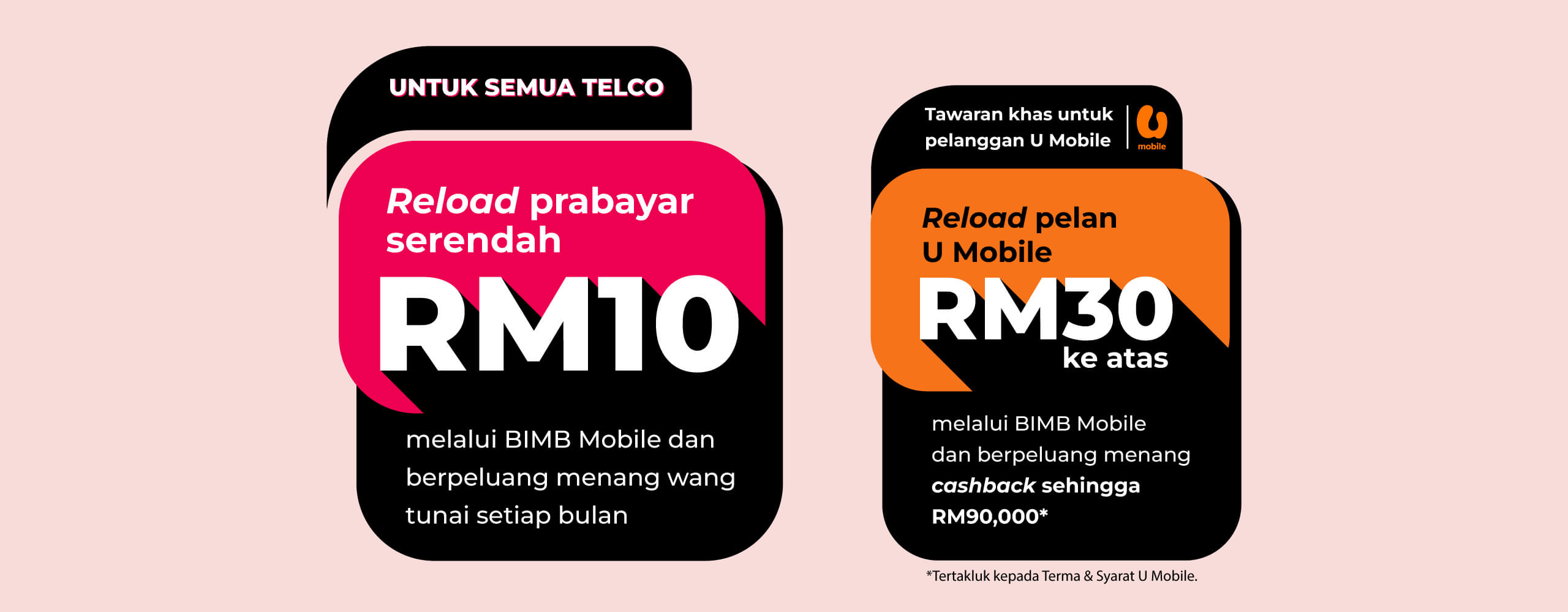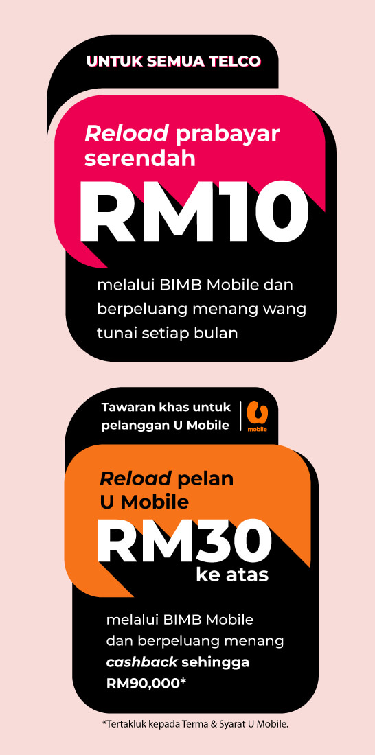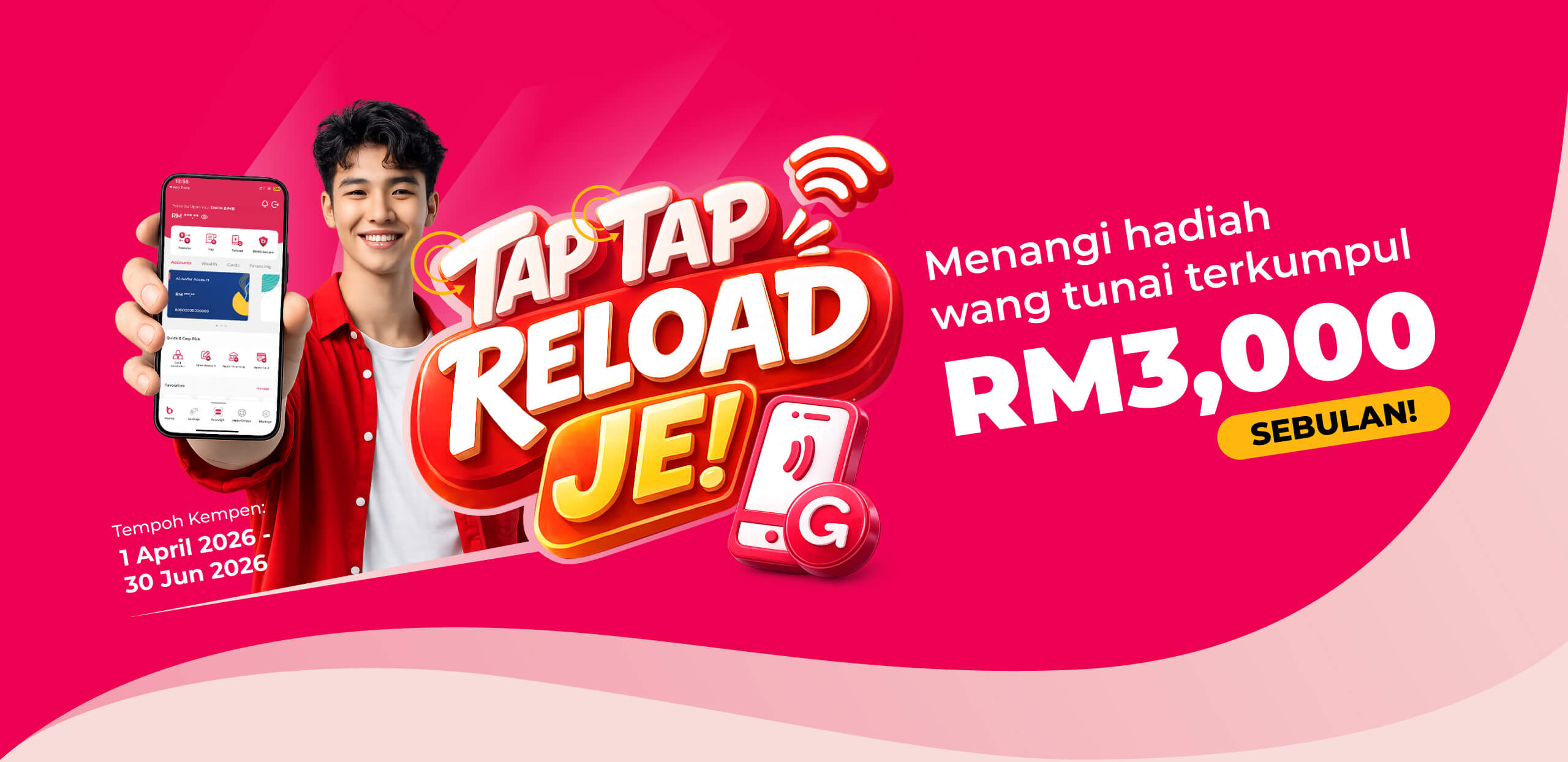 Tap Tap Reload Je! dan menangi hadiah wang tunai terkumpul bernilai RM3,000 sebulan dengan reload menggunakan BIMB Mobile.